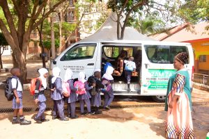 Headteacher Nursery section Mrs. Nakitto Hanifa Kibira at her desk